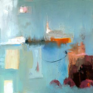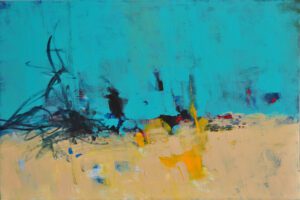 תמונה של ציור מופשט בגווני כחול ותכלת מעורב בגוונים חמים של חום ואדום עבור מאמר בנשוא מופשט