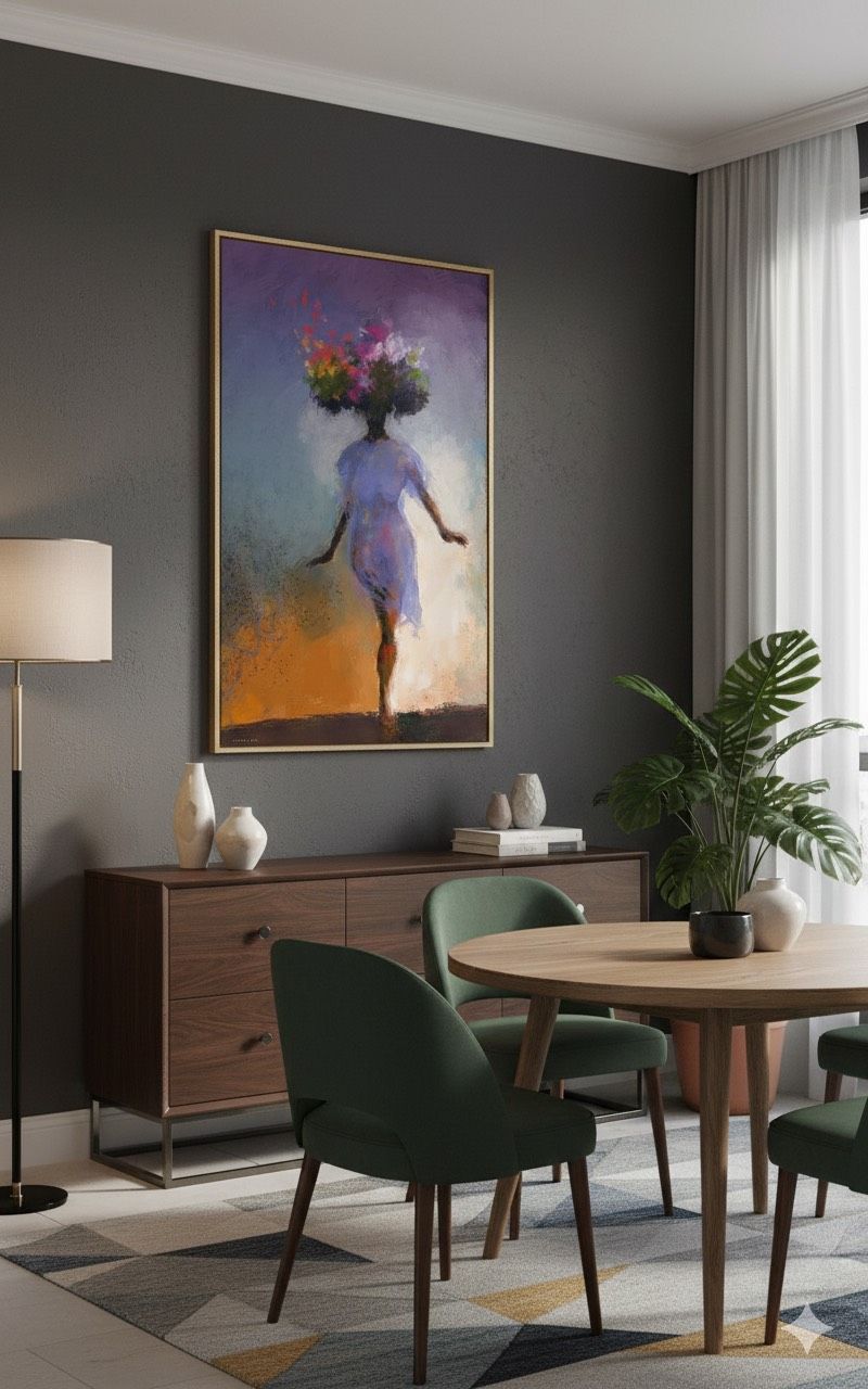 הציור מעביר תחושת קלילות, שמחה וקצב של איזון פנימי, בדיוק מה שאנחנו כה זקוקים לו במרחב הבית.