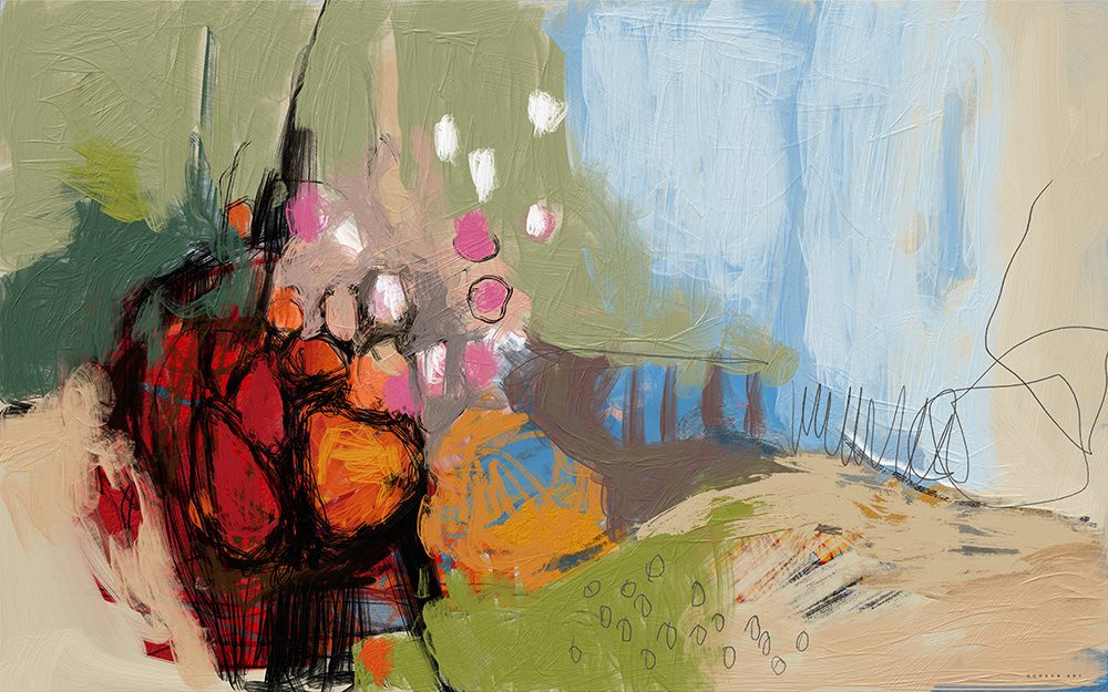 הציור "ביכורים" לוכד את האנרגיה המתפרצת של חג השבועות דרך מופשט עז מלא חיוניות. כתמים של אדום וכתום נאספים במרכז הקומפוזיציה כפרי בשל בתוך טנא פרוע, בעוד נגיעות ירק ותכלת שמיים מעניקות תחושת מרחב ושמחה של קציר. היצירה מוצעת למכירה כהדפס איכותי על קנבס כותנה משובח, המתוח על מסגרת עץ אחורית נסתרת ומוכן לתלייה מיידית. ההדפסים זמינים במגוון גדלים ובהתאמה אישית לפי הצורך, כדי להכניס אור ואופטימיות לכל חלל בבית.
