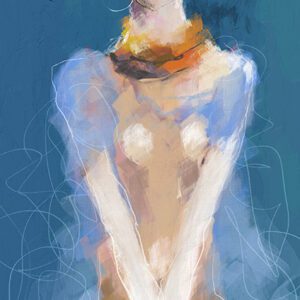 היצירה ״התמזגות״ (Blending) מציגה רגע של אינטימיות עמוקה, שבו הגבולות הפיזיים בין שתי דמויות הופכים למרקם אחד של צבע ותשוקה. בציור זה, גוני האוקר והכחול מתערבבים זה בזה בהרמוניה, ויוצרים תחושה של התמוססות הדדית בתוך חיבוק עוטף.