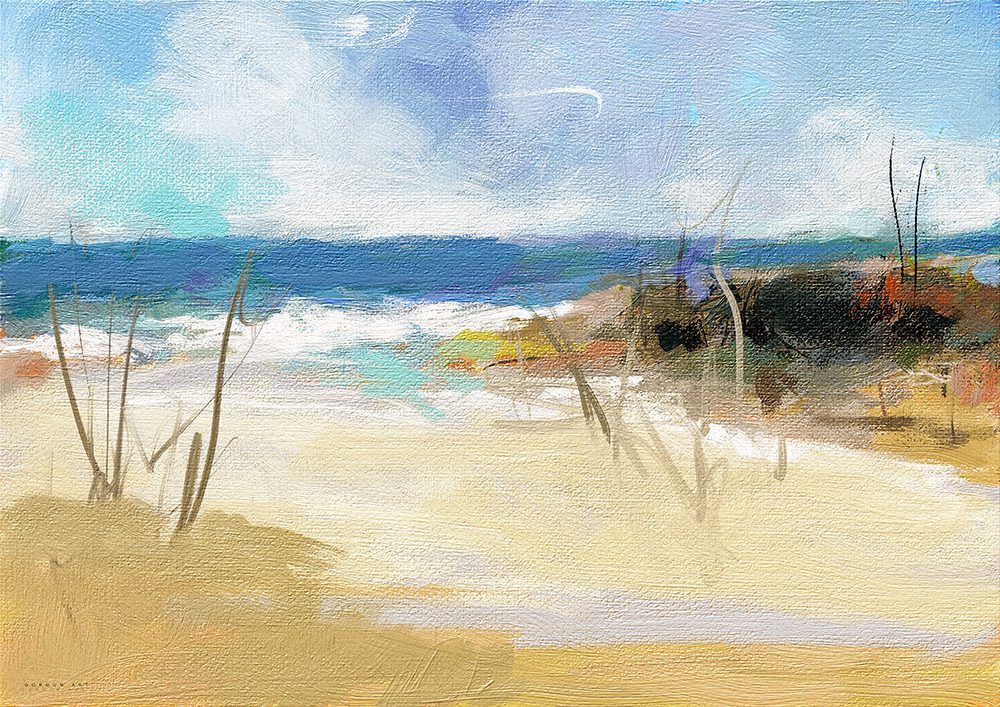היצירה "חוף אכזב" מתארת רגע חולף של מפגש בין חול, ים ושמיים, מפגש בו הגבולות מיטשטשים והממשות הופכת לזיכרון רחוק. בעבודה זו, איש גורדון משתמש במשיחות מכחול חופשיות ובצבעוניות של כחול עמוק מול גווני חול חמים, היוצרים תחושה של נסיגה והתחדשות. הציור מוצע למכירה כהדפס על קנבס כותנה משובח עם מסגרת עץ אחורית נסתרת ומוכן לתלייה על הקיר. ההדפסים מוצעים במגוון גדלים ובהתאמה אישית לפי הצורך, כדי להעניק לחלל הבית נגיעה של שלווה פואטית ומרחבים פתוחים.