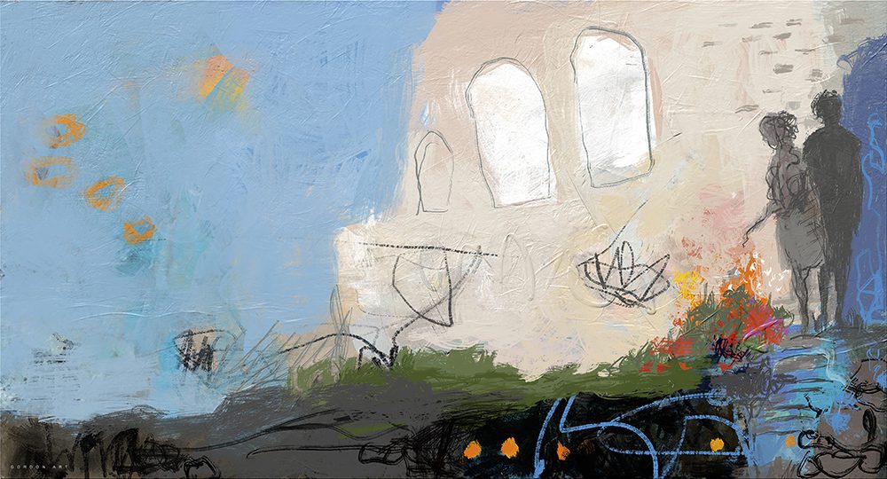 הציור "בית אישה וגינה" מזמין את הצופה למרחב של זיכרון והתרפקות על זוגיות שקטה. הקומפוזיציה משלבת בין עולמות: מצד אחד מבנים קשתיים הלוחשים עבר וביטחון, ומצד שני דמויות צללית וגינה צבעונית המפיחות חיים ונוסטלגיה. הצבעוניות הרכה של התכלת והשמנת יוצרת תחושת מרחב פתוח ומזמין. היצירה מוצעת למכירה כהדפס על קנבס כותנה משובח עם מסגרת עץ אחורית נסתרת ומוכן לתליה על הקיר. ההדפסים מוצעים במגוון גדלים ובהתאמה אישית לפי הצורך.