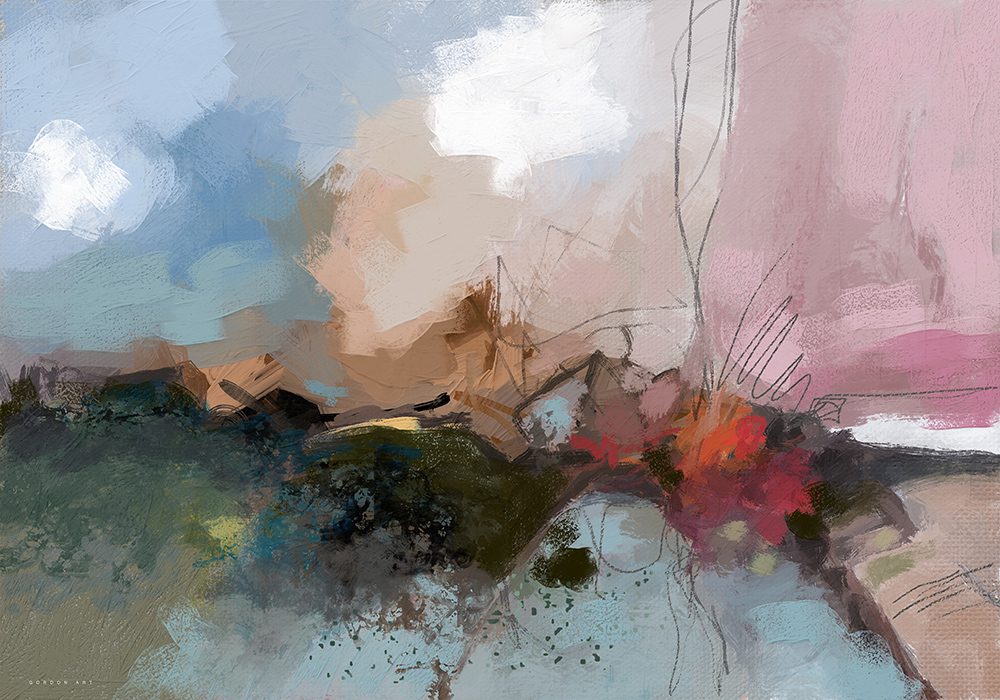 הדמיה של הציור נקודת תצפית מאת איש גורדון כשהציור על קנבס תלוי בסלון
