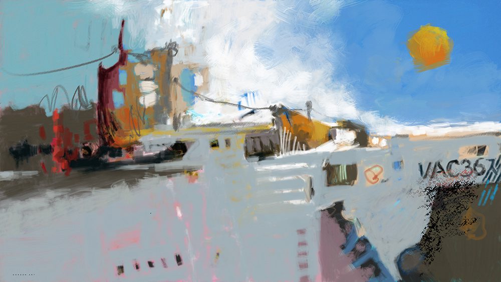 דיוקן מופשט של עוצמה ימית ותעשייתית.